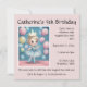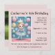 A charming watercolor illustration of a happy little girl with curly blonde hair, dressed in a glittery pale blue party dress and matching boots. She wears an oversized golden crown and holds pastel balloons in soft shades of pink, yellow, and blue. The backdrop features a dreamy deep blue sky sprinkled with tiny sparkles and floating balloons, while the girl stands on a rosy pink floor. The scene has a fairytale-like quality, full of warmth, joy, and celebration.