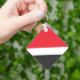The key chain is made of metal and really sturdy. The flower design is really cheerful. The logo and colors are clear and crisp!