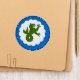 "Argent, a sea-wolf contourny vert, a bordure engrailed azure."
