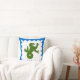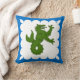 "Argent, a sea-wolf contourny vert, a bordure engrailed azure." Populace badge for the Principality of the Mists in the Society for Creative Anachronism. Back of pillow is a medieval pattern in coordinating colors.