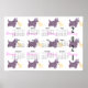 Adorable Scottish Terrier dog and her puppy pattern with bones. Design on small poster with calendar 2021.