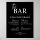 Modern black wedding bar and signature drink sign featuring the Bride and Groom's signature drinks and additional drink choices. Printable wedding signs are the perfect way to print your wedding signs at home. Simply download the size you need and print at your local office supply store or at home.