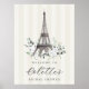 Add a touch of Parisian charm to your bridal shower with this printed or printable welcome sign from the Paris Bloom collection by Redwood & Vine Design Co. With elegant stripes, floral accents, and an Eiffel Tower centerpiece, it’s a perfect décor piece to welcome guests to your celebration.