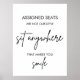 Printable wedding signs are the perfect way to print your wedding signs at home. Simply download the size you need and print at your local office supply store or at home. Modern wedding seating sign features calligraphy signature font and the Assigned seats are not our style, sit anywhere that makes you smile. Click the "design tool" button to customize further.
