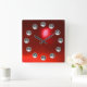 PRINTED 3D RED RUBY AND WHITE GEMSTONES SQUARE WALL CLOCK