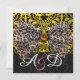 PRINTED ANIMAL FUR BOW GOLD BLACK DAMASK MONOGRAM INVITATION