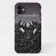 Elegant personalized girly black and white case with a beautiful printed black and silver sequins pattern, a cute printed black and silver bow and ribbon and pretty printed diamond bling jewel. Personalize it with your own name. A trendy, glamorous gift for her - women and girls will love this fashionable black case. Please note: All cases on the Zazzle website have flat printed images - not real jewels or ribbons.