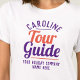 Tour Guide T-shirt for a travel company. Easily identified in a crowd as printed on front and back! Add the name of the Tour Guide to create a personal holiday company uniform for your travel agent or travel agency employees to wear when guiding tourists. Great tourism t-shirt. Holiday rep shirt.