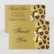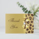 Elegant custom gold Thank You flat cards for weddings with a beautiful brown and tan printed leopard fur pattern, a cute shiny gold printed bow and ribbon and pretty printed diamond bling jewel. These classy, glamorous, fashionable invites are decorated both sides. Beautiful, chic, trendy, modern invitations. Please note: All invites on Zazzle have flat printed images. Text, font and color of font can all be customized. If you need assistance customizing your product please contact me through my store. I will be happy to help. I have matching products in my store.