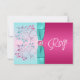 PRINTED BOW Pink, Aqua Floral Reply Card