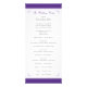 This romantically elegant two-toned purple and white floral wedding program or Order of Service has a PRINTED purple ribbon and bow with a pair of PRINTED diamond jewel and FAUX silver glitter (simulated) joined hearts on it, with ornate corner flourishes on the back. ***PLEASE NOTE there are no raised elements on this card. Everything is printed flat. ***PLEASE NOTE that if you change the fonts or size of the fonts, it may alter how your program prints. It will print the way you see it on your monitor, so if you have alignment issues, or sizing problems, please contact me for help. I will not see your program once you order it, and Zazzle will NOT edit anything (typos, alignment, etc.). If you require assistance or would like any other matching items, please email your request to niteowlstudio@gmail.com.