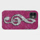 Elegant, glamorous girly case. Beautiful, dazzling trendy printed image silver and diamonds bling jewels musical note on a chic hot pink sparkly glitter printed image background. A cute classy, fashionable, stylish, pretty gift for her or any musical lover.