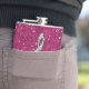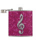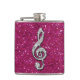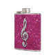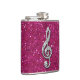 Elegant, glamorous girly flask. Beautiful, dazzling trendy printed image silver and diamonds bling jewels musical note on a chic hot pink sparkly glitter printed image background. A cute, classy, fashionable, stylish, pretty gift for her or any music lover.
