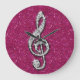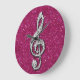 Elegant, glamorous girly clock. Beautiful, dazzling trendy printed image silver and diamonds bling jewels musical note on a chic hot pink sparkly glitter printed image background. A cute, classy, fashionable, stylish, pretty gift for her or any music lover.