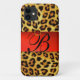 PRINTED LEOPARD FUR RED RUBY GEMSTONE MONOGRAM, Case-Mate iPhone CASE