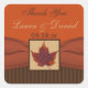This 1.5" square brown and orange striped wedding favor thank you sticker and/or envelope seal has a PRINTED apricot orange colored ribbon on it and a sophisticated striped pattern background with a framed look dried maple leaf on it that matches the wedding invitation shown below. It would be ideal for an Autumn or brown and orange themed wedding with its earth tones and rustic look. ****PLEASE NOTE, if you change the shape of the sticker yourself, or if you change the fonts, or the size of the font, some of the design and/or text may get cut-off. Everything will print as you see it on your monitor. I will not see changes you make, and Zazzle will NOT correct anything (typos, mis-alignment etc.). The text is all customizable. You can select a 1.5” or 3” size sticker . If you need help with this product, please email me BEFORE you place your order. If you require any other matching items, please email your request to niteowlstudio@gmail.com.