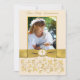 Your daughter can thank all your friends and family who attended her First Holy Communion and/or gave her a gift by sending out this pretty ivory and gold floral First Holy Communion invitation style thankyou card with a PRINTED ON gold ribbon and a PRINTED ivory and gold Cross button medallion and a template area for you to upload your daughter's photo into. The paper choice and all text is customizable. If you require any other items in this design style, please email your request to niteowlstudio@gmail.com.