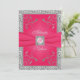 PRINTED RIBBON Hot Pink, Silver Wedding Invitation