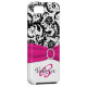 Monogrammed modern pink, black, and white floral damask Case-Mate Vibe™ iPhone 5 Case with a hot pink PRINTED ribbon and PRINTED jewel buckle on it.