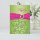 PRINTED RIBBON Pink, Green Damask Reply Card