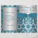 PRINTED RIBBON Silver, Teal Damask Wedding Program