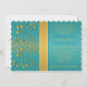 PRINTED RIBBON Teal, Gold Floral Monogram Invite