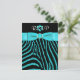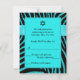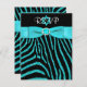 This trendy aqua blue, black, and white FAUX glitter (PRINTED) zebra print striped rsvp card with a PRINTED turquoise blue satin ribbon and a PRINTED diamond and jewel brooch on it matches the Bat Mitzvah party invitation shown below. It is shown here on basic paper, but it would look extra nice on the metallic paper in "ice", which has a subtle opalescence and sparkle to it. I do NOT recommend the metallic silver or gold paper as they will both severely alter the design colors. If you require any matching items in this design, or if you need help customizing it with your info, please email niteowlstudio@gmail.com. ****PLEASE NOTE that everything will print as it appears on your monitor. I will not see your invitation once you order it and Zazzle will not edit anything.
