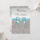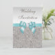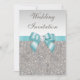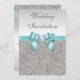 Printed Silver Sequins Diamonds Teal Bow Wedding Invitation