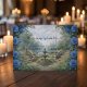Set the tone for your happily ever after with this fine art stationery suite. Perfect for couples planning a romantic estate or destination garden celebration.This design features a symmetrical, hand-painted illustration style depicting a grand stone staircase leading toward a central water fountain. In the distance, a subtle silhouette of a fairytale castle sits against a soft sky with light clouds. The scene is framed by lush borders of sage green and olive leaves, accented by soft pastel blue roses. The background simulates a muted cream and aged parchment hue, providing a vintage canvas for the elegant cursive script and classic serif typography.