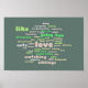 I wanted to do something simple yet meaningful for my husband for our anniversary. I had alot of fun designing a wordcloud around the special things he brings to our marriage and some important points in our relationship. I played with the colors until things really popped. Once the print arrived I framed it and it looks terrific and he loves it! The colors were awesome, the print is nice and heavy, perfect in a frame.