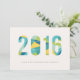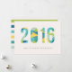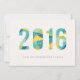 A colorful, modern New Year's card, with a bold typographic design.