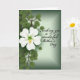 Soft colors and a single white flower sits on the left side, its five petals opening gently around a sunny yellow center that feels like a quiet, affectionate hello ❤️. Behind it, blurred green leaves and thin branches line the left edge, like a garden scene just out of focus where someone might be standing close by. The background shifts in a smooth gradient from pale sage in the upper right to deep emerald toward the lower left, giving the image a calm, intimate depth. On the right half, the message “wishing you a wonderful Mother’s Day” appears in flowing, cursive-style lettering. The text is set against the lighter green area so it stays easy to read, and it balances the flower without crowding it. The gentle contrast between the bright petals and the darker greens suggests a tender closeness, like a warm note shared between loved ones 🌼. The yellow center of the bloom is dotted with tiny stamen details, while the surrounding foliage stays softly blurred along the left margin.