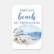Attractive "Private Beach No Trespassing" sign with exquisite watercolor beach image with water, sand, umbrella, relaxing chair, basket and throw blanket in blue, white and sand tones. Use of block and hand written Script typography. Three text sections available for your own customization (i.e "Private Beach Party", "private beach guests only.)