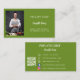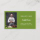 A basil green colored background. Personalize and add your photo, title, business name/name and text, contact information on front. White text.
