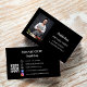 Back: Templates for Your name, title, phone number, mail and website address, your own QR-code to your website or social media account. Facebook and Instagram icons/account.