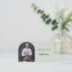 A sage green colored background. Personalize and add your title, business name/name and text on front. Black text. An arch shaped photo frame.