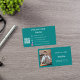 A teal green colored background. Personalize and add your photo, title, business name/name and text, contact information on front. White text.