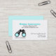 Custom private investigation business cards, done in white, with graphics of a pair of binoculars, on the left side of the card. The back of the card is done in a light aquamarine. Text on the front and back is fully customizable to read what ever you want. Simple yet great looking card that will catch everyone's attention.