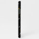 Fun black phone case featuring a pattern of spyglasses (magnifying glasses), fingerprints, question marks and exclamation marks. Great for private investigators, detectives, and crime scene investigators.