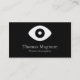 Elegant Simple Black Private Investigator Business Card Design with a big Eye on front. High Quality Graphic and Print
