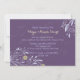 A stylish invitation with graceful, abstract swirls and flowers in the lightest shade of lavender against a deeper plum background. Suitable for just about any happy occasion.