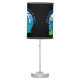The lamp looks exactly like the picture, bright and colorful. The lamp shade is plastic not what I expected, however I love it! The printing is clear and the name can easily be read.