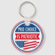 Pro choice is patriotic. A bold pro choice keychain about women's freedom in red, white, and blue for feminist Americans. To be able to choose is to be free. An American flag waves below the words on this political gift.