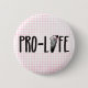Pro-Life text with newborn baby footprints and pink gingham bow on pink and white gingham background.