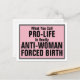 Pro-Life is Anti-Woman Forced Birth Postcard