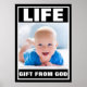 This is a beautiful Pro-life image of smiling baby boy with blue eyes and the word LIFE and GIFT FROM GOD. A black and white border surrounds the image. All text and fonts can be modified.