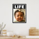 This is a beautiful Pro-life image of smiling African American baby girl with a bow in her hair. Above is the word LIFE. A black and white border surrounds the image. All text and fonts can be modified.