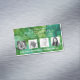 A bold business card design featuring four personalized square photo images, (ie instagram photos) Several customized text areas in white, on a colorful blue and green abstract painting background in blue and green alcohol inks similar to watercolor effect by Susan Luinge (myself) . Choose your own background color or pattern if you prefer.