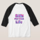 I bought the Men's Basic 3/4 Sleeve Raglan T-Shirt, White/Navy. It arrived on time for a gift and is of a great quality and fits perfectly! So cute! Zazzle has done it again! The printing was clear and filled in solidly.