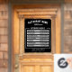 A simple custom business opening hours vinyl window cling decal sign template in a modern minimalist style on a black background. This versatile template allows you to easily design a custom opening times list for your store, salon, restaurant, cafe or any other business. Need help? Feel free to contact me using the message button. I am happy to help with your personalization, additional items or custom orders.